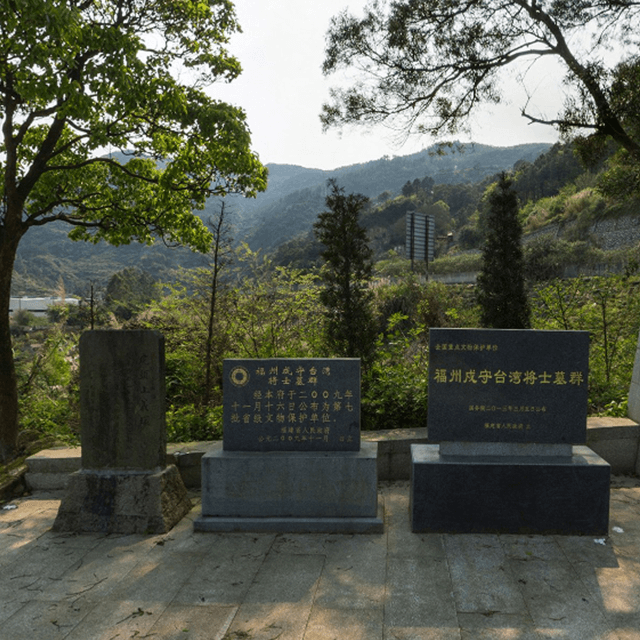 (闽安)戍守告湾将士墓群 福州戍守台湾将士墓群位于福建省福州马尾区闽安古镇虎头山麓半山与小洋交界处的,原名闽安镇虎头山清军义冢,被福建省政府授予“福建省文物保护单位”,是我国重要的涉台文物,是轮戍台澎捐躯殉国清军将士的遗骸墓群。