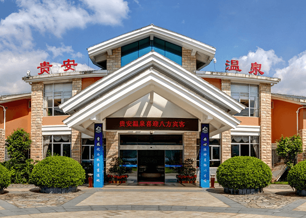 贵安温泉位于连江县潘渡乡贵安村境内,被誉为“福建温泉之乡”,是全国闻名的地热集中区之一。贵安村总面积0.7平方公里,温泉日合理开采量7000吨,水温8000℃~9200℃,其中富含数十种对人体有益的矿元素,早在公元1057年时就已被开发利用。此外,贵安村地处敖江畔,造就了山、溪、湖、泉、滩等多种自然景观,加之森林覆盖率近80%,旅游资源相当丰富。贵安温泉旅游度假村占地400亩,按国家AAAA旅游景区标准兴建,是融会议培训、休闲度假、健身娱乐为一体的花园式温泉养生圣地。度假村坐落于素有中国五大温泉之乡,中国十大温泉休闲基地美誉的连江县贵安村,距福州市区28公里(贵新隧道西绕城高速开通后仅12公里),交通便捷,独享优越的地理环境。